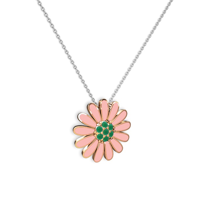 Kök zümrüt 14 ayar rose altın kolye (Pastel pembe mineli, 40 cm beyaz altın rolo zincir)