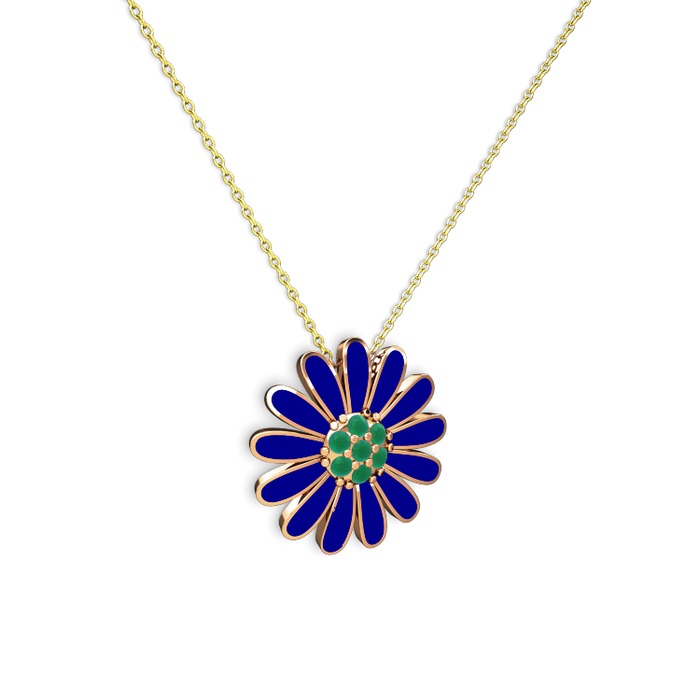 Kök zümrüt 18 ayar rose altın kolye (Lacivert mineli, 40 cm altın rolo zincir)