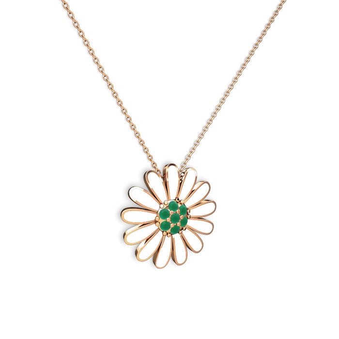 Kök zümrüt 8 ayar rose altın kolye (Beyaz mineli, 40 cm rose altın rolo zincir)