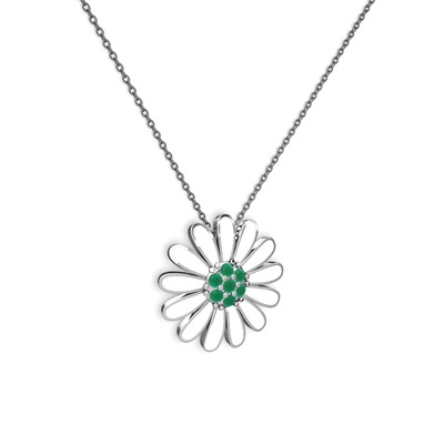 Kök zümrüt 925 ayar gümüş kolye (Beyaz mineli, 40 cm gümüş rolo zincir)