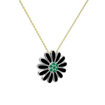Kök zümrüt 925 ayar gümüş kolye (Siyah mineli, 40 cm altın rolo zincir)