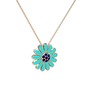 Lab safir 925 ayar rose altın kaplama gümüş kolye (Turkuaz mineli, 40 cm rose altın rolo zincir)