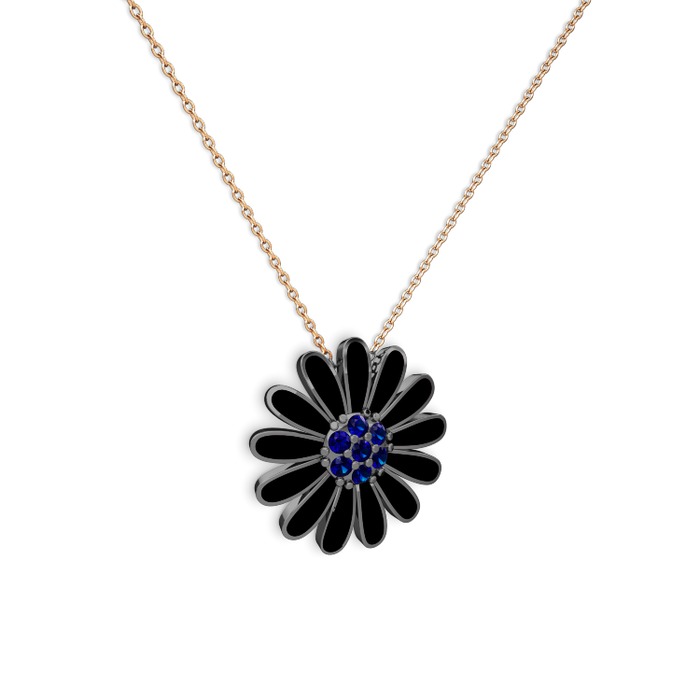 Lab safir 925 ayar siyah rodyum kaplama gümüş kolye (Siyah mineli, 40 cm rose altın rolo zincir)