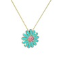Pembe kuvars 14 ayar rose altın kolye (Turkuaz mineli, 40 cm altın rolo zincir)