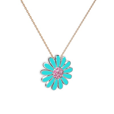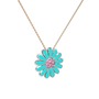 Pembe kuvars 18 ayar beyaz altın kolye (Turkuaz mineli, 40 cm gümüş rolo zincir)