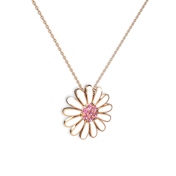 Pembe kuvars 18 ayar rose altın kolye (Beyaz mineli, 40 cm gümüş rolo zincir)