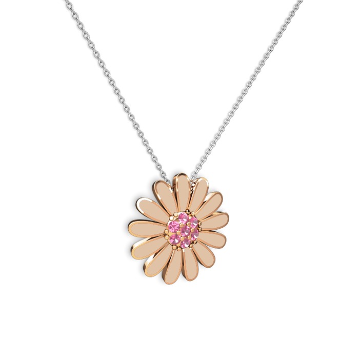 Pembe kuvars 18 ayar rose altın kolye (Ekru mineli, 40 cm beyaz altın rolo zincir)