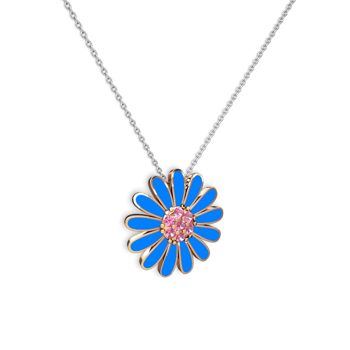Pembe kuvars 18 ayar rose altın kolye (Mavi mineli, 40 cm beyaz altın rolo zincir)