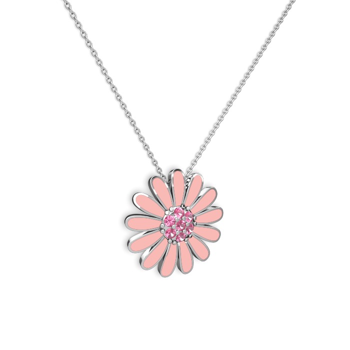 Pembe kuvars 925 ayar gümüş kolye (Pastel pembe mineli, 40 cm beyaz altın rolo zincir)