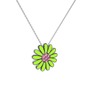 Pembe kuvars 925 ayar siyah rodyum kaplama gümüş kolye (Neon yeşil mineli, 40 cm beyaz altın rolo zincir)