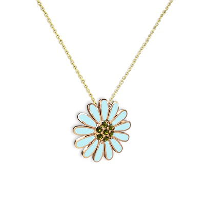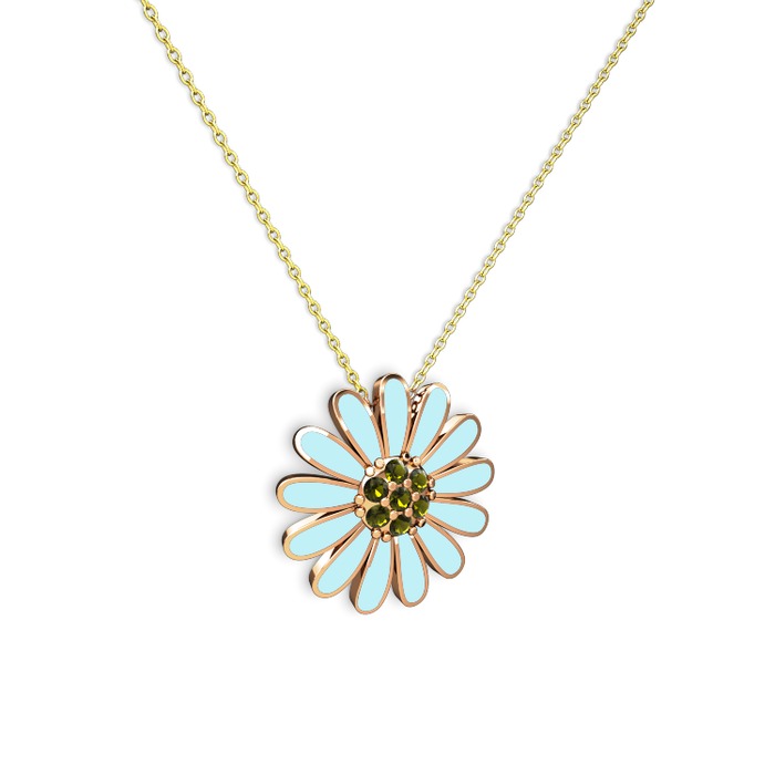 Peridot 18 ayar rose altın kolye (Pastel mavi mineli, 40 cm gümüş rolo zincir)