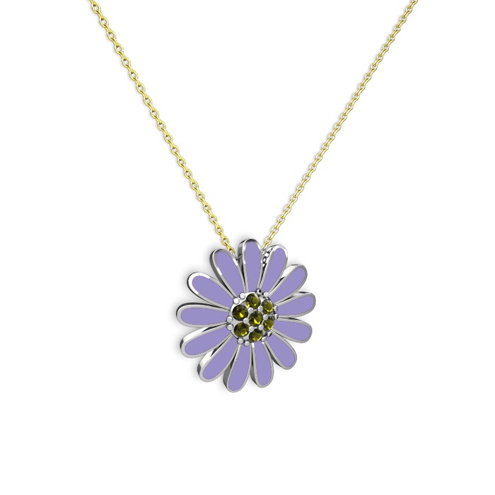 Peridot 8 ayar beyaz altın kolye (Menekşe mineli, 40 cm altın rolo zincir)