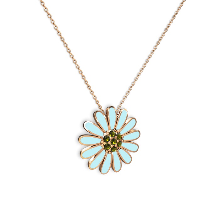 Peridot 8 ayar rose altın kolye (Pastel mavi mineli, 40 cm gümüş rolo zincir)