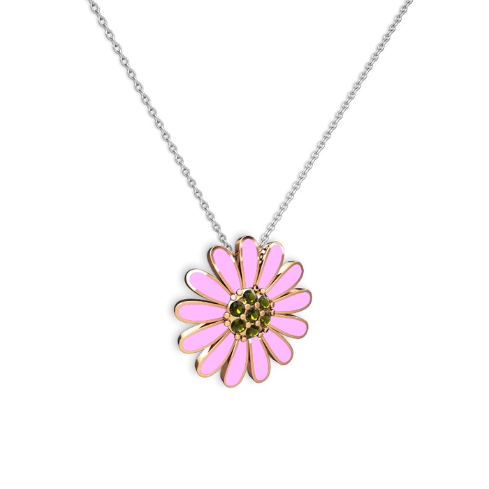 Peridot 8 ayar rose altın kolye (Pembe mineli, 40 cm gümüş rolo zincir)