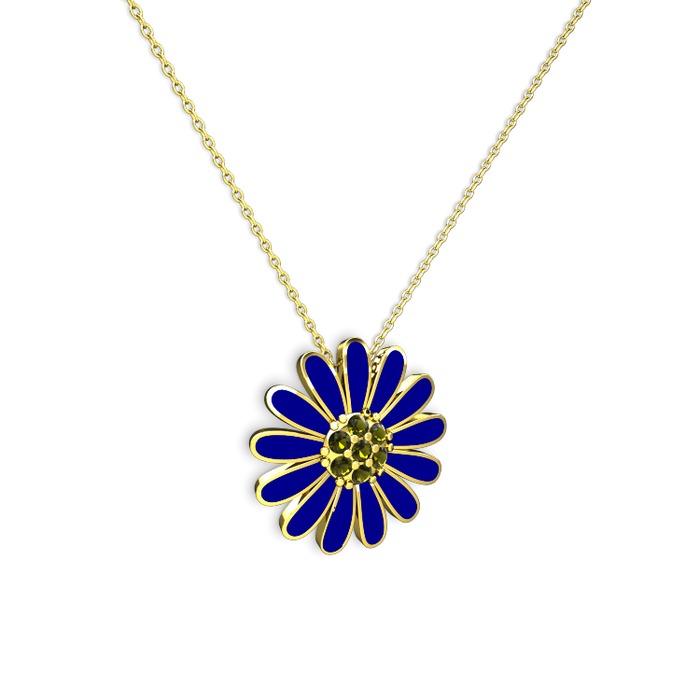 Peridot 925 ayar altın kaplama gümüş kolye (Lacivert mineli, 40 cm altın rolo zincir)