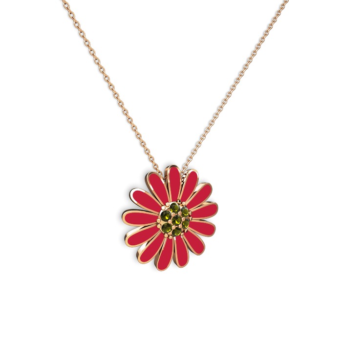 Peridot 925 ayar rose altın kaplama gümüş kolye (Kırmızı mineli, 40 cm rose altın rolo zincir)