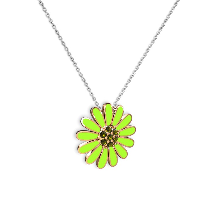 Peridot 925 ayar rose altın kaplama gümüş kolye (Neon yeşil mineli, 40 cm gümüş rolo zincir)