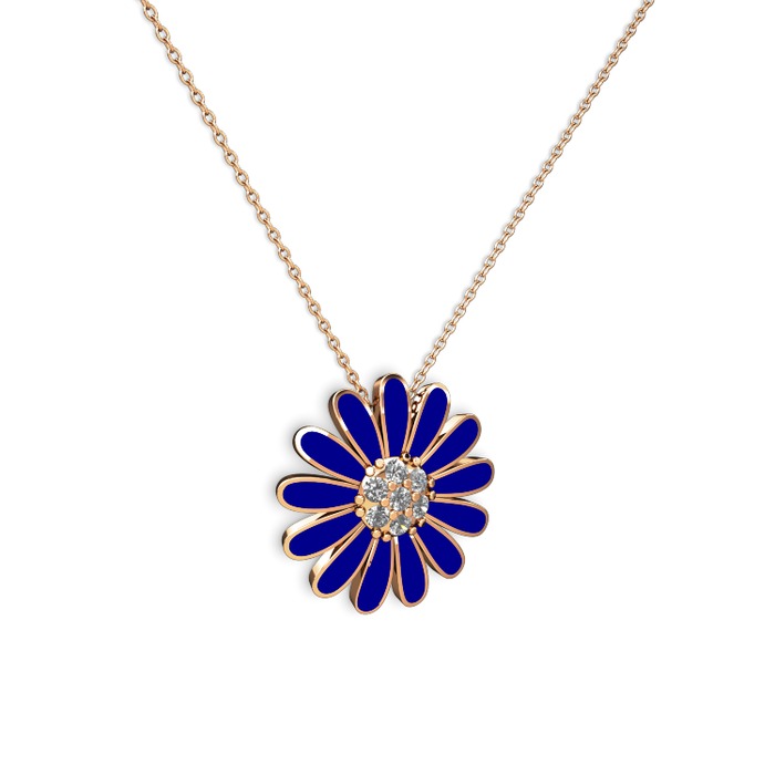 Pırlanta 14 ayar rose altın kolye (0.252 karat, lacivert mineli, 40 cm rose altın rolo zincir)