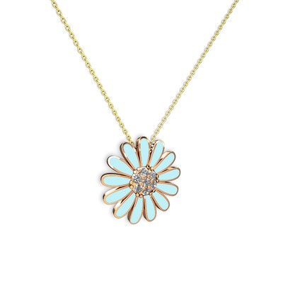 Pırlanta 18 ayar rose altın kolye (0.252 karat, pastel mavi mineli, 40 cm gümüş rolo zincir)