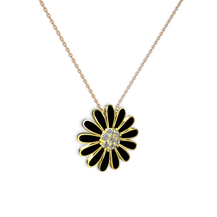 Pırlanta 8 ayar altın kolye (0.252 karat, siyah mineli, 40 cm gümüş rolo zincir)