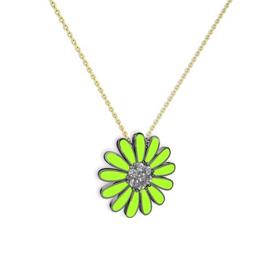 Pırlanta 925 ayar siyah rodyum kaplama gümüş kolye (0.252 karat, neon yeşil mineli, 40 cm altın rolo zincir)