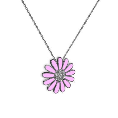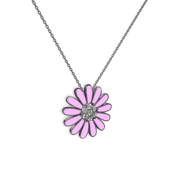 Pırlanta 925 ayar siyah rodyum kaplama gümüş kolye (0.252 karat, pembe mineli, 40 cm gümüş rolo zincir)