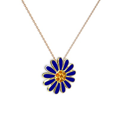 Sitrin 18 ayar altın kolye (Lacivert mineli, 40 cm rose altın rolo zincir)