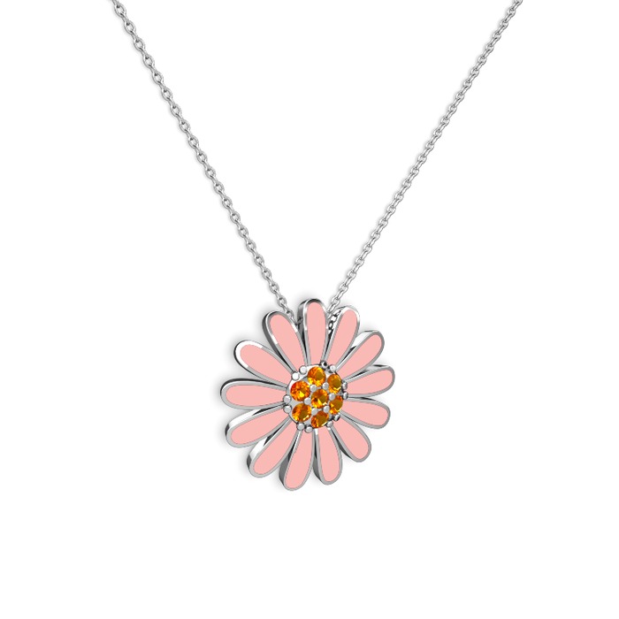 Sitrin 8 ayar beyaz altın kolye (Pastel pembe mineli, 40 cm beyaz altın rolo zincir)