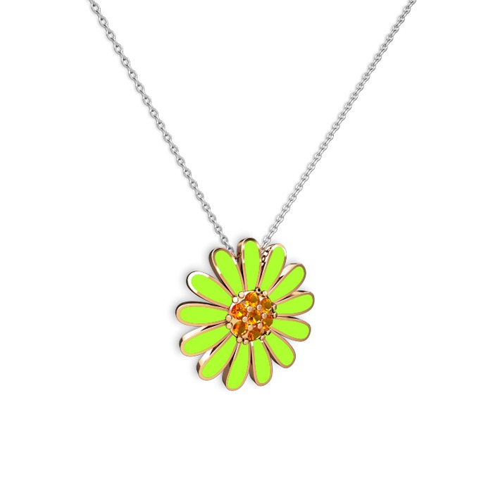 Sitrin 925 ayar rose altın kaplama gümüş kolye (Neon yeşil mineli, 40 cm gümüş rolo zincir)