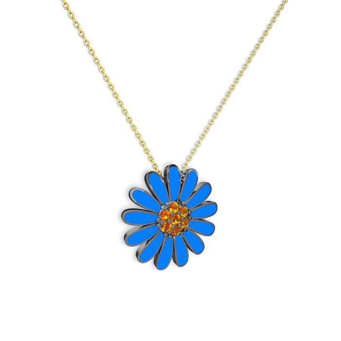 Sitrin 925 ayar siyah rodyum kaplama gümüş kolye (Mavi mineli, 40 cm altın rolo zincir)