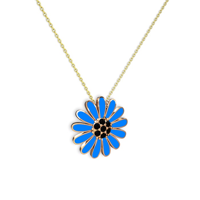 Siyah zirkon 18 ayar rose altın kolye (Mavi mineli, 40 cm altın rolo zincir)