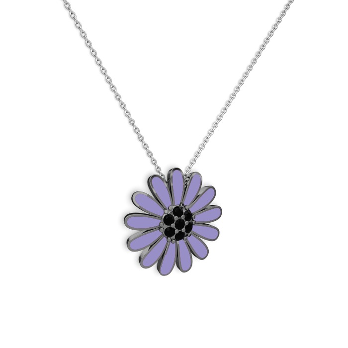 Siyah zirkon 925 ayar siyah rodyum kaplama gümüş kolye (Menekşe mineli, 40 cm beyaz altın rolo zincir)