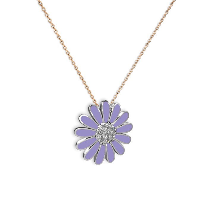 Swarovski 14 ayar beyaz altın kolye (Menekşe mineli, 40 cm rose altın rolo zincir)