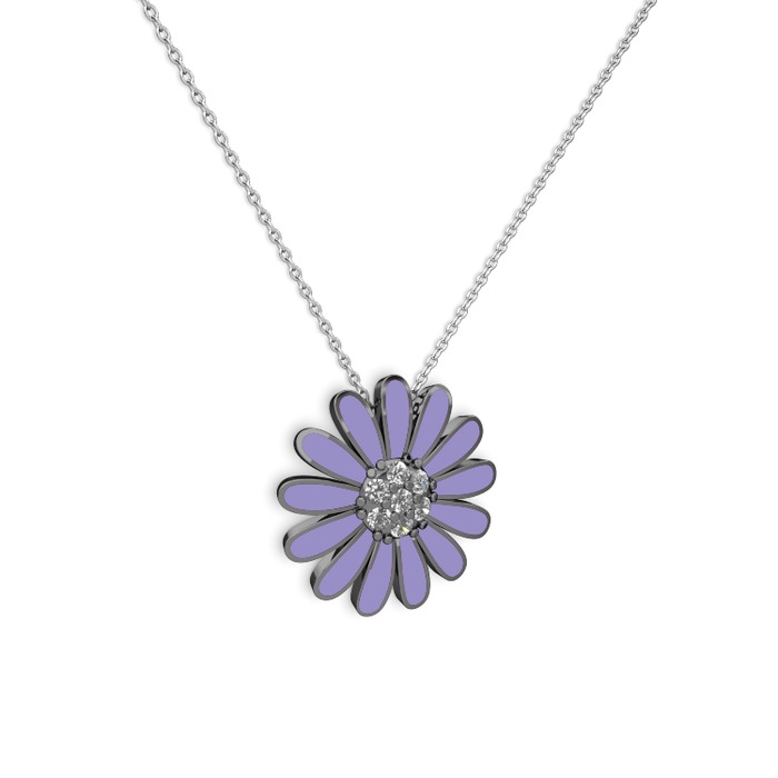 Swarovski 925 ayar siyah rodyum kaplama gümüş kolye (Menekşe mineli, 40 cm beyaz altın rolo zincir)