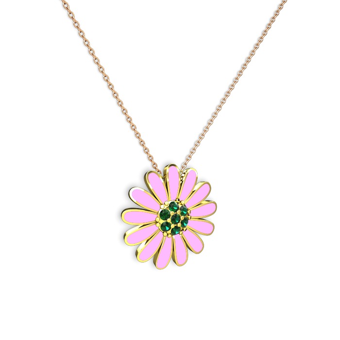 Yeşil kuvars 18 ayar altın kolye (Pembe mineli, 40 cm gümüş rolo zincir)