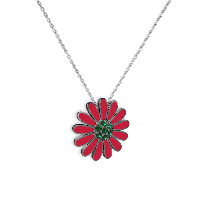 Yeşil kuvars 925 ayar siyah rodyum kaplama gümüş kolye (Kırmızı mineli, 40 cm beyaz altın rolo zincir)