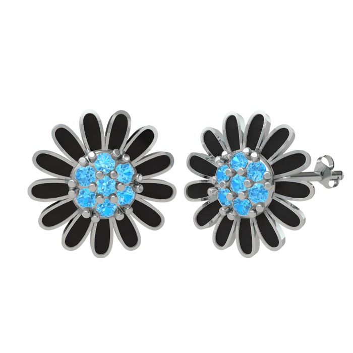 Akuamarin 18 ayar beyaz altın küpe (Siyah mineli)
