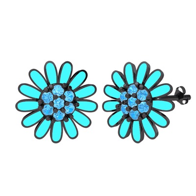 Akuamarin 925 ayar siyah rodyum kaplama gümüş küpe (Turkuaz mineli)