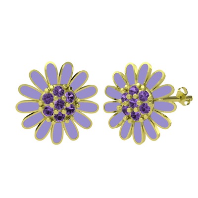 Ametist 14 ayar altın küpe (Menekşe mineli)