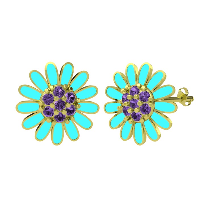 Ametist 14 ayar altın küpe (Turkuaz mineli)