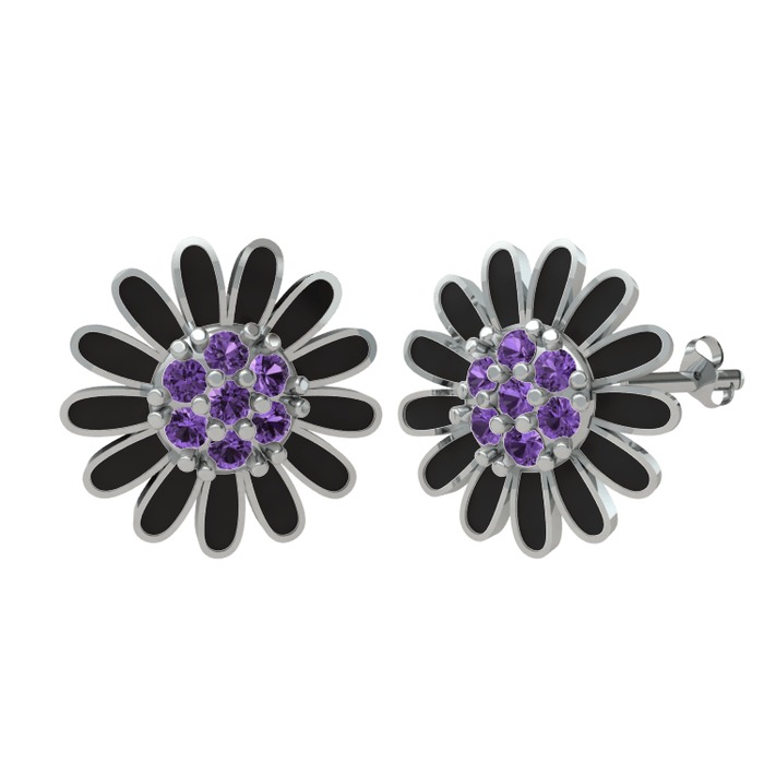 Ametist 8 ayar beyaz altın küpe (Siyah mineli)