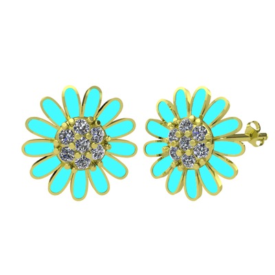 Beyaz zirkon 14 ayar altın küpe (Turkuaz mineli)