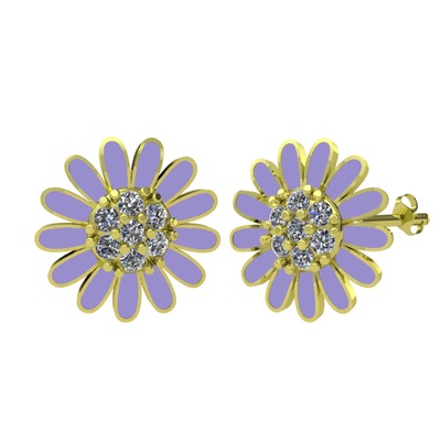 Beyaz zirkon 18 ayar altın küpe (Menekşe mineli)