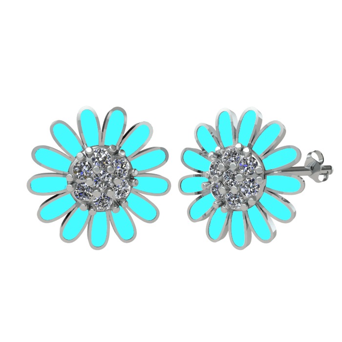 Beyaz zirkon 18 ayar beyaz altın küpe (Turkuaz mineli)