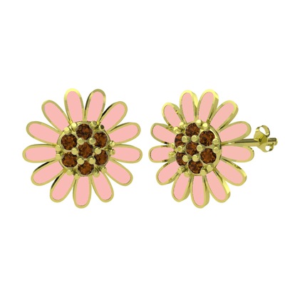 Dumanlı kuvars 14 ayar altın küpe (Pastel pembe mineli)