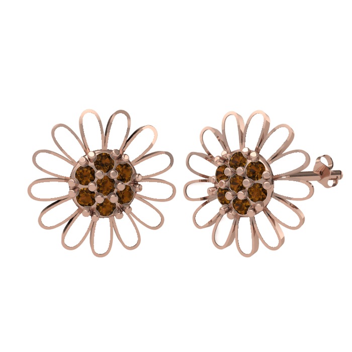 Dumanlı kuvars 14 ayar rose altın küpe (Beyaz mineli)