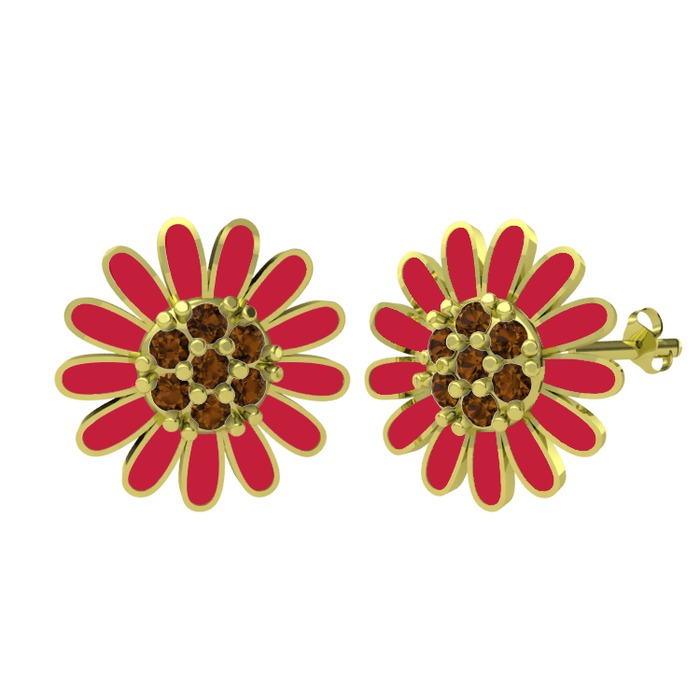 Dumanlı kuvars 18 ayar altın küpe (Kırmızı mineli)