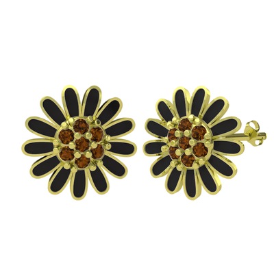 Dumanlı kuvars 18 ayar altın küpe (Siyah mineli)