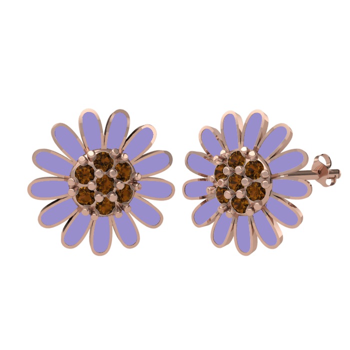Dumanlı kuvars 18 ayar rose altın küpe (Menekşe mineli)