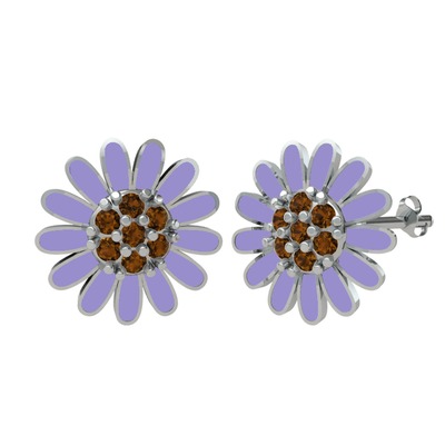 Dumanlı kuvars 8 ayar beyaz altın küpe (Menekşe mineli)